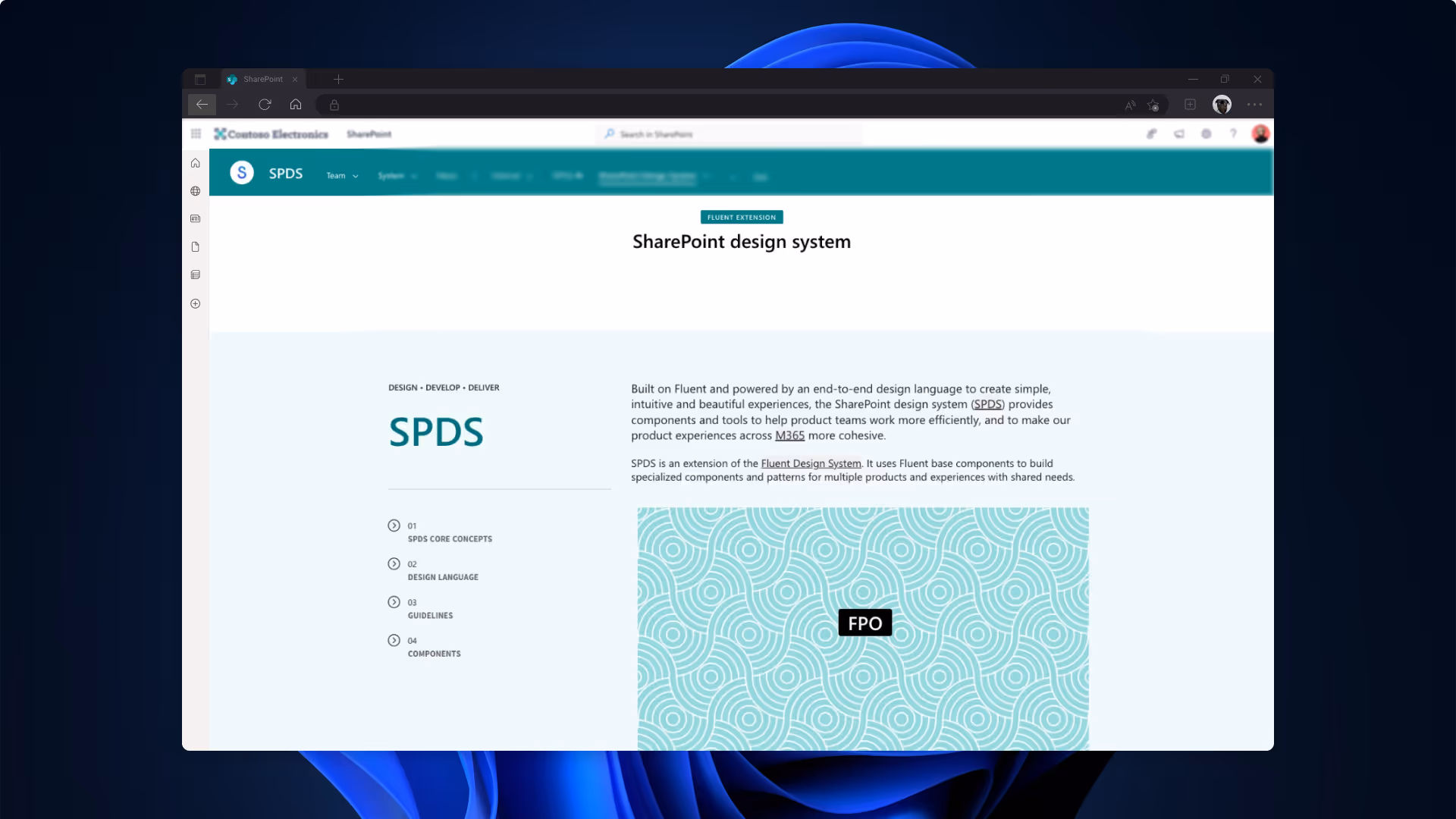 Show them what it can do in action. Knowing that Vision Day was on the horizon, I mentioned that could be an ideal time to show some initial concepts of a Fluent 2.0 SharePoint. My manager quickly piggy-backed that with the work the Sites and Pages team was already doing envisioning what advancing SharePoint's design capabilities could be. I started creating mocks showing what the product could look like with Fluent components and an updated UI. The goal was for the show to be all jazz hands and wows.